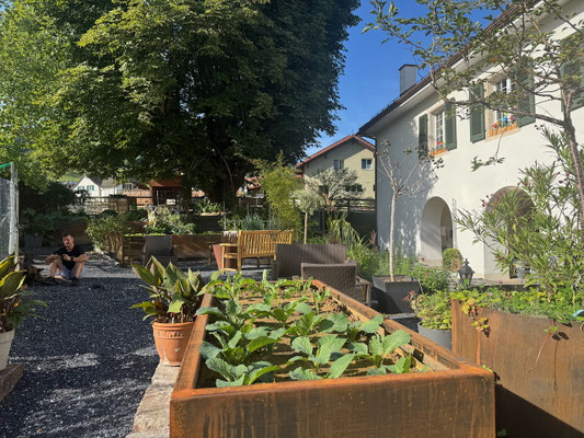 Die wunderschöne Gartenanlagen lässt die Gedanken schweifen. Zugleich bietet der grosse Garten uns auch die Möglichkeit mit den Bewohnern zusammen in Hochbeeten Gemüse anzupflanzen und auch Obst und Beeren zu gewinnen.