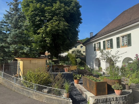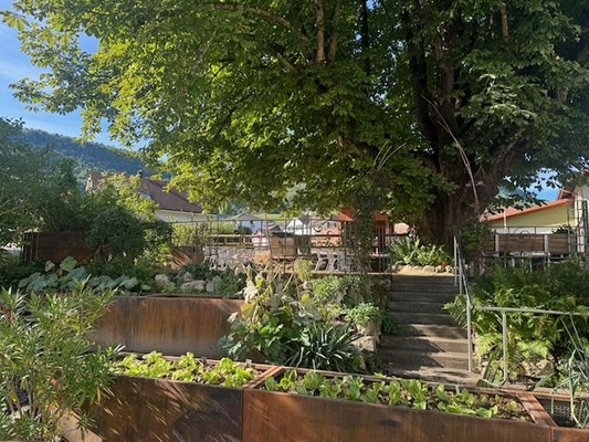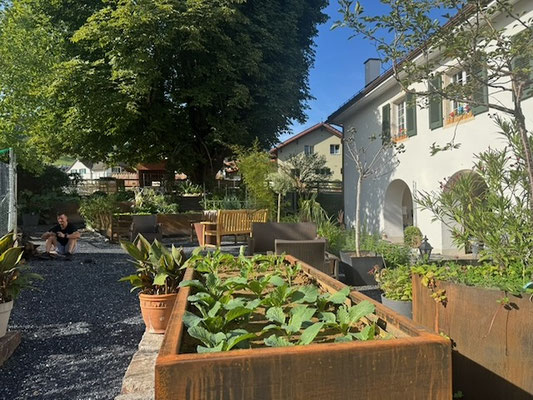 Mit enorm viel Arbeitsaufwand verbunden war unsere Garten-Sanierung. Einerseits mussten die alten Holzhochbeete ersetzt werden, andererseits konnte nun endlich eine Gartenanlage realisiert werden, die den Zugang für alle ermöglicht, also auch für Rollator- und Rollstuhl- angewiesene Menschen. Mit einer neuen Feuerschale wurde ein Begegnungsort für alle geschaffen und die Seidenhühner sind zu einer neuen Attraktion für Einheimische und Bewohnende geworden.